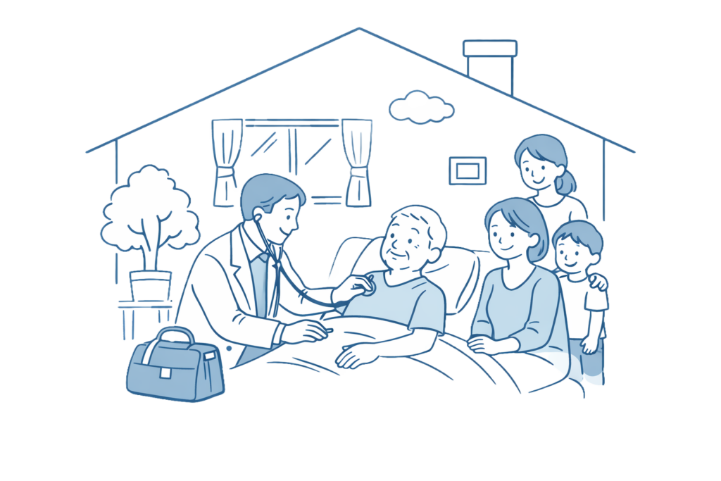 はら内科クリニックでは、医師が定期的にご自宅や施設へ訪問し、診療を行う**訪問診療(在宅医療)**を行っています。